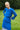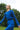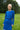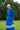 Blouse made of cyan blue chiffon with a round neckline. Front piece with gradient gathers and sleeves with pleats on the shoulders and small ruffle detail on the cuffs.