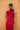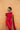 Ankle-length dress made of red chiffon, with an asymmetrical neckline and a multi-position red band. The skirt ends in a layered flounce with an opening. Invisible zipper and inner lining.