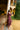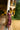 Vestido de largo tobillero confeccionado en tejido de gasa estampada en tonos vino y mandarina. Escote bardot rematado con vivo fruncido, mangas de gasa al codo y falda compuesta por tres volantes de capa. Cremallera y forro interior.