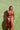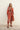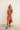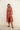 Pantalón tobillero con cinturilla drapeada de 8cm y 3 pinzas. Confeccionado en tejido viscosa 100%, estampado en tonos teja y marrón. Cremallera invisible.