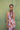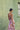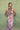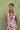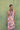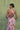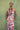 Vestido de largo tobillero confeccionado en viscosa estampado en tonos malvas y caldera, con escote halter y tirantes que se cruzan en la espalda rematados en un lazo. Cinturón con recortes y falda fluida . Cremallera invisible y forro interior.