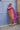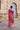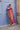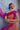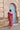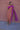 Vestido tobillero elaborado en crepé color caldera, con escote asimétrico y banda haciendo un lazo multiposición en color magenta. La falda muere en un volante de capa con abertura. Cremallera invisible y forro interior.